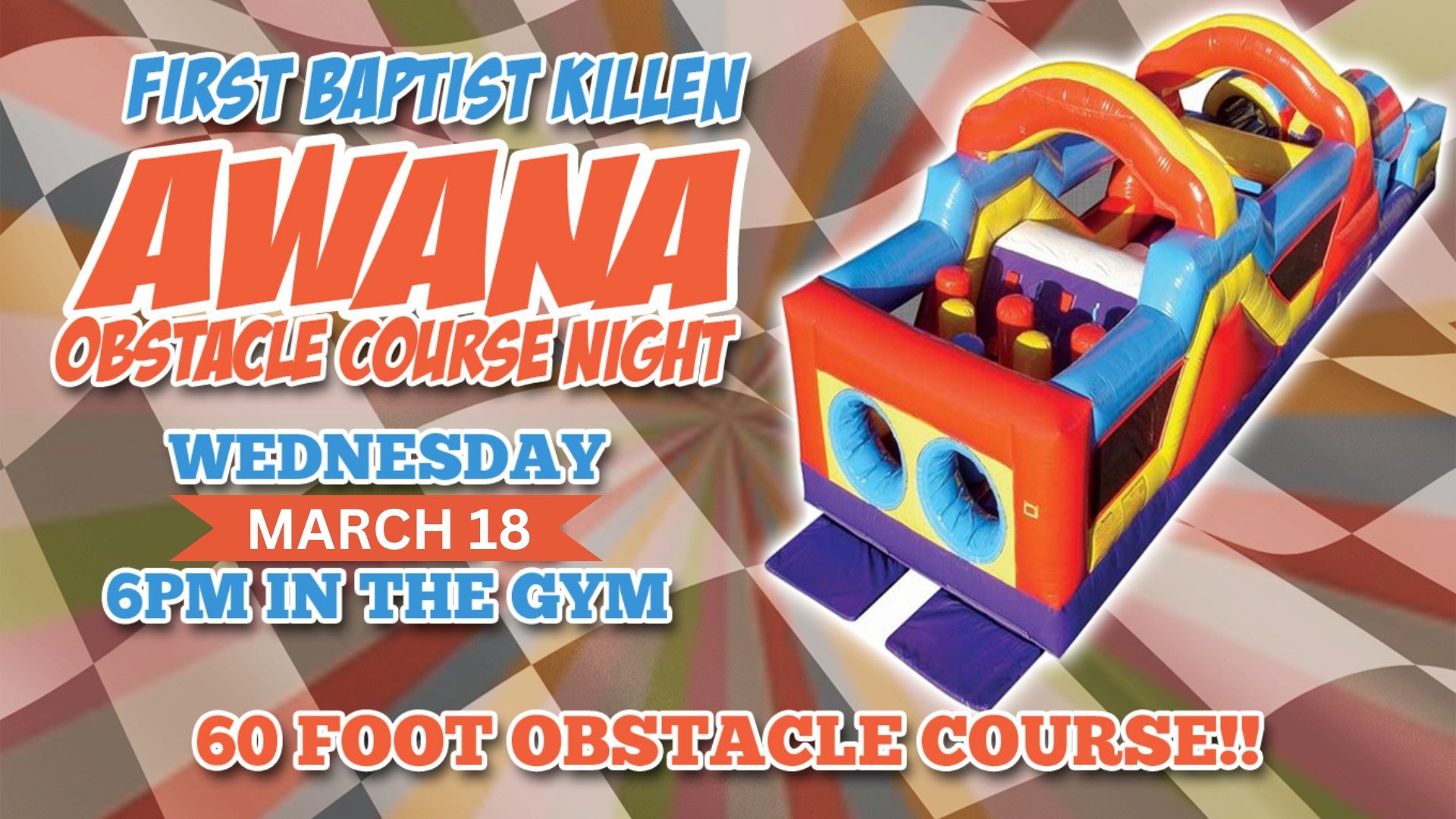 Kids up to 6th grade can join in on the fun on Wednesday, March 18, from 6 to 7:30 pm for Obstacle Course Night!