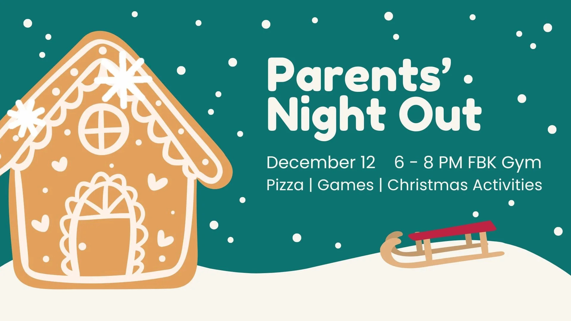 Need to do some Christmas shopping or just need a break? Drop your kids off at the FBK gym for a night full of fun with pizza, games, and Christmas activities! The event is free, but registration is required so we can plan ahead. Click here to sign up!
